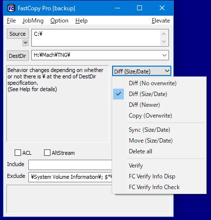 - Diff (Copy if Newer) برای کپی فقط فایلهای جدید یا تغییر یافته